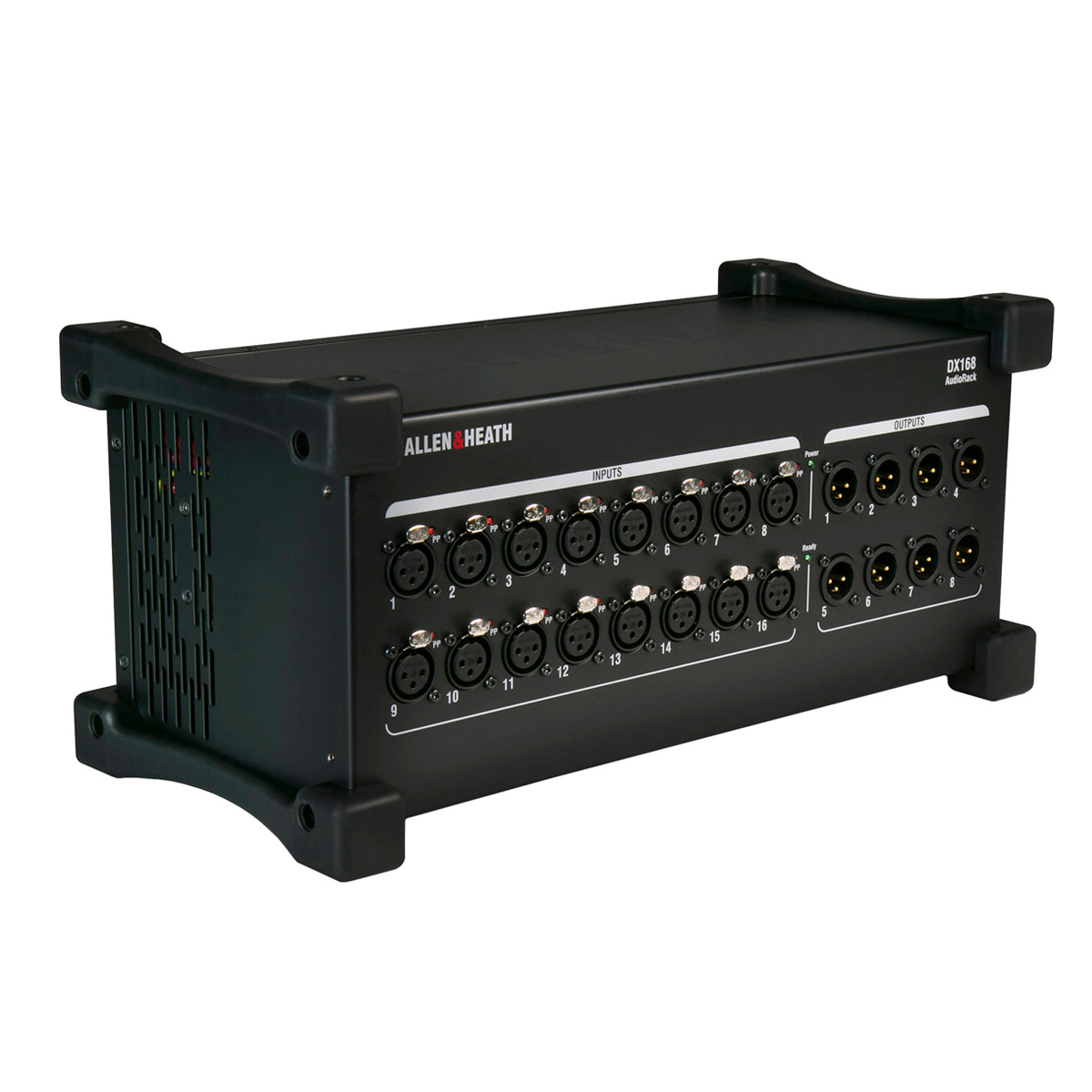 La Allen & Heath DX168 es la solución portátil ideal para expandir entradas y salidas de sistemas dLive, SQ y Avantis, combinando alta calidad de audio, configuración sencilla y máxima flexibilidad para cualquier aplicación en vivo.