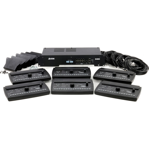En el corazón del sistema se encuentra el D400-Dante, un distribuidor A-Net de 2U que recibe hasta 32 canales desde la red Dante sin requerir tarjetas adicionales ni entradas analógicas. El D400-Dante alimenta directamente a los seis mezcladores personales A320 incluidos, utilizando cables Cat5e para enviar tanto señal de audio digital como energía.
