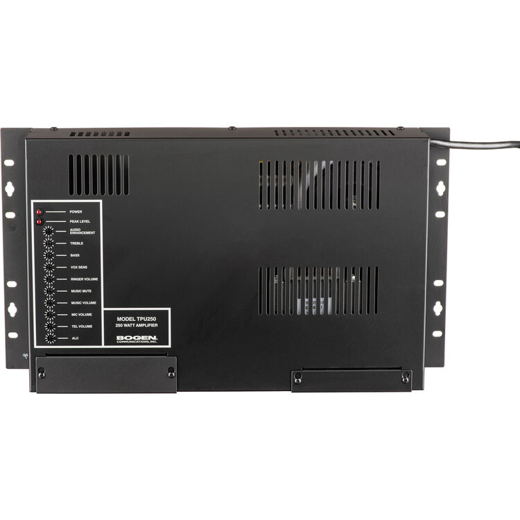 El Bogen TPU250 Telephone Paging Amplifier es un amplificador profesional de 250 watts diseñado para aplicaciones de comunicación y paginación en negocios, almacenes, oficinas, instituciones educativas y sistemas comerciales donde la claridad y fiabilidad son esenciales. Este modelo permite integrar mensajes de voz mediante teléfono o micrófono, además de reproducir música ambiental con control automático de prioridad.
