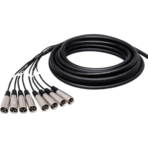 En un extremo, cuenta con 8 conectores XLR hembra dispuestos en una caja de escenario compacta y resistente, mientras que en el otro extremo se encuentran los 8 conectores XLR macho para enviar las señales directamente a la consola o interfaz de audio.
