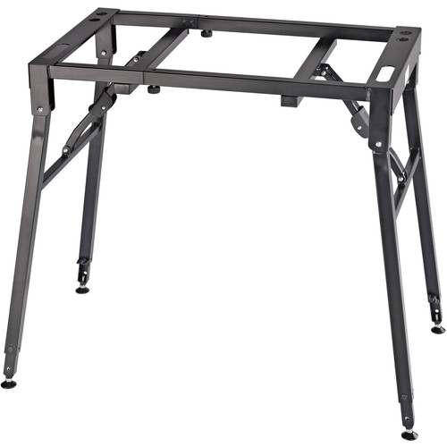 El K&M 18950 Table-Style Adjustable Keyboard Stand es un soporte profesional diseñado para brindar máxima estabilidad y flexibilidad a teclistas en estudio, escenario o ensayo. Con su diseño tipo mesa, permite trabajar tanto de pie como sentado, ofreciendo una altura regulable entre 60 y 100 cm.
