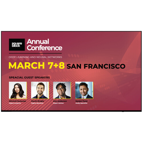 Esta pantalla está equipada con tres puertos HDMI y dos puertos USB, permitiendo la reproducción directa de contenido desde memorias, computadoras o dispositivos móviles. Su compatibilidad con Wi-Fi 5 (802.11ac) y Ethernet facilita la transmisión de contenido de manera inalámbrica o mediante redes cableadas, ideal para entornos donde se requiere control centralizado o actualizaciones frecuentes de información.