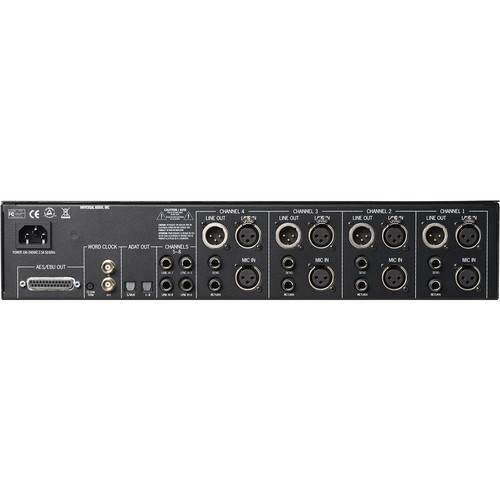 Preamp de 4 canales con mezcla de tono tubo/solid-state, compresores estilo 1176 y conversión AD de 8 canales. Ideal para estudio profesional.