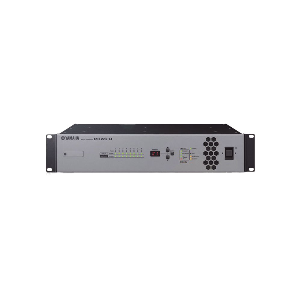 El Yamaha MTX5-D es un procesador de matriz de 34 entradas por 16 salidas, diseñado como el núcleo central de sistemas de audio comerciales en restaurantes, hoteles, tiendas, salones de eventos y más. Su formato 2RU integra entradas y salidas analógicas, digitales y de red, además de potentes herramientas DSP para lograr un sonido optimizado en cada zona.